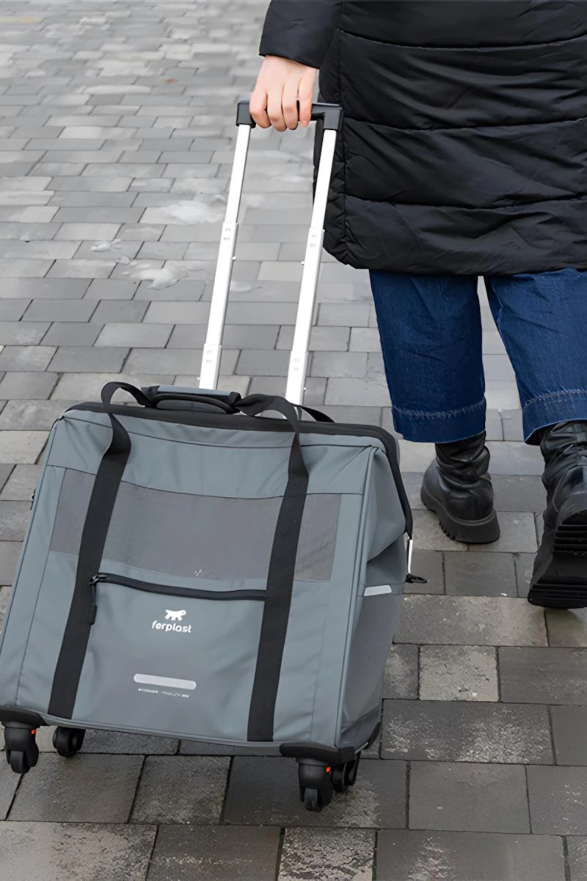 Ferplast Voyager 450 Tekerlekli Evcil Hayvan Taşıma Çantası Siyah, evcil dostunuz için en iyi seyahat çözümüdür. Geniş iç hacmi, havalandırmalı panelleri ve tekerlekli yapısı ile konforlu bir yolculuk sunar. Hem kediler hem de küçük-orta ırk köpekler için ideal bir seçenektir.