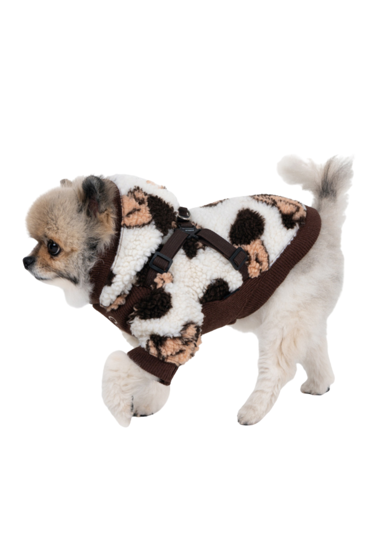 Puppia New York'un Max modeli, soğuk mevsimler için tasarlanmış özel bir köpek giysisidir. Bu ürün, baştan geçirilerek giydirilen, sıcak polar kumaştan yapılmış ve içine entegre edilmiş bir göğüs tasmasına sahip bir **kapüşonlu sweatshirt'tür (kazak)**. Şirin köpek desenli polar kumaşı ile köpeğinizi sıcacık tutarken, tek parça tasarımı sayesinde ayrıca bir tasma veya boyunluk kullanmanıza gerek kalmaz.