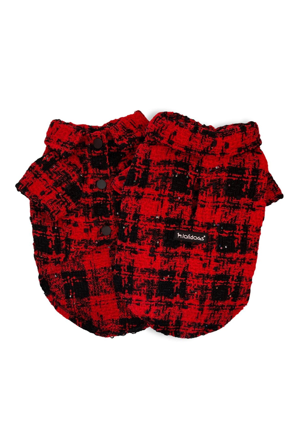 Scarlet Luxe ile köpeğinizin tarzını göz alıcı bir şekilde tamamlayın. Kırmızı-siyah buklet kumaşı ve parlak iplik detaylarıyla şıklık ve konforu bir araya getirir. Önden çıtçıtlı formu ile kolayca giydirilebilen bu ceket, sahne köpeği gibi hissetmek isteyen dostlar için ideal bir seçimdir.