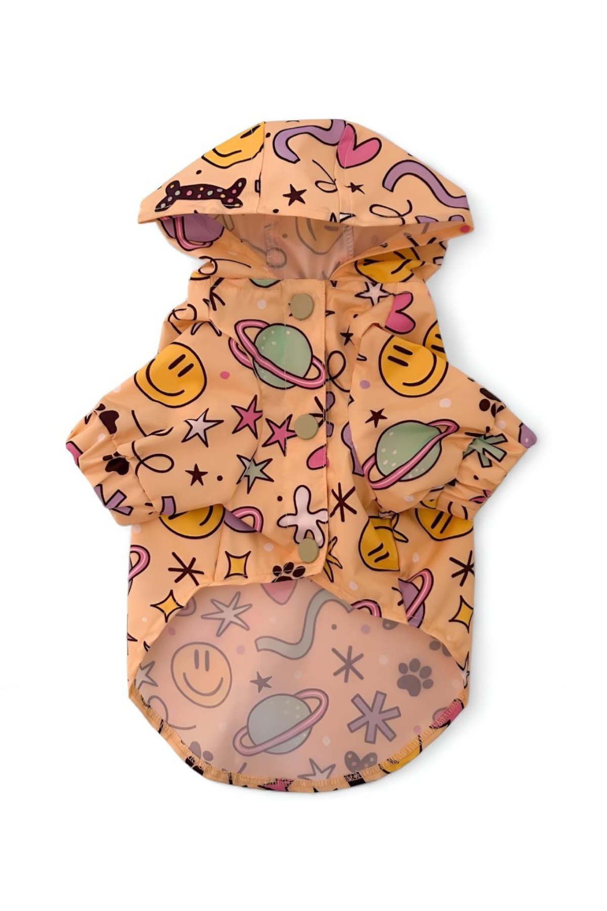Yağmur altında bile köpeğinizin enerjisi hiç solmasın! Suya dayanıklı ve rüzgar geçirmez Cosmic desenli köpek yağmurluğu, onun yürüyüşlerini yıldızların arasında bir yolculuğa dönüştürüyor.