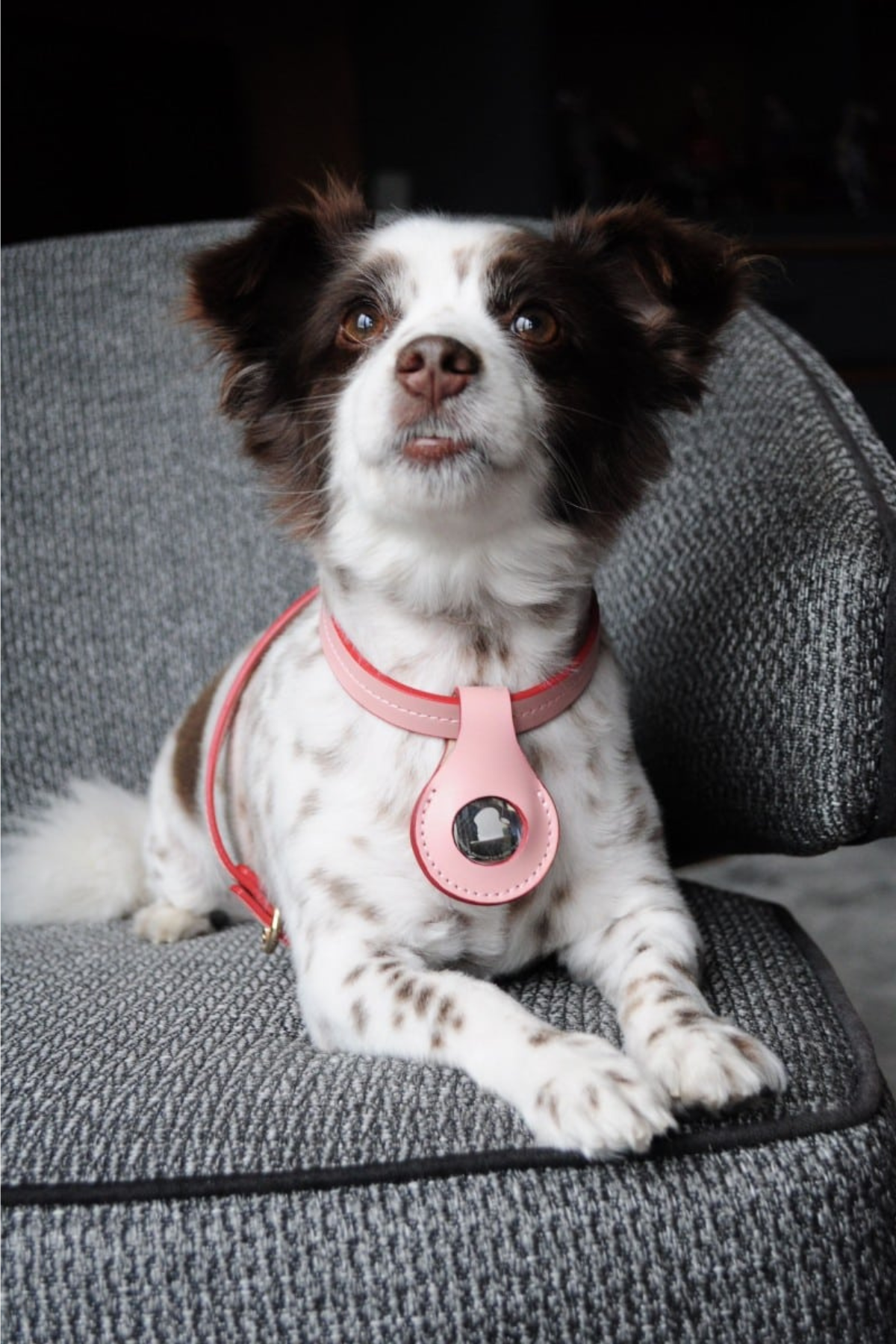 Zoe Pet Atelier'in özel tasarımı olan deri airtag kılıfı, köpeğinizin takip cihazını güvenli ve şık bir şekilde taşımanızı sağlar.